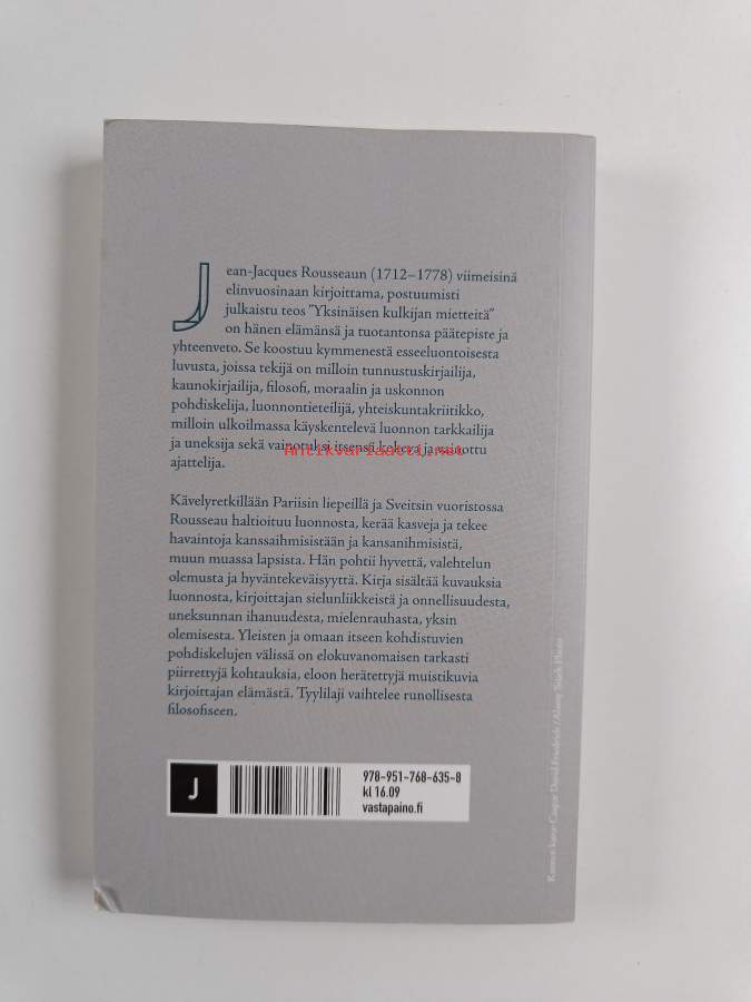 Muu(t) tekijä(t): Lauri Mehtonen, Erkki SaloAlkuteos: Les rêveries du promeneur solitaireAsiasanat: kirjailijat, filosofit