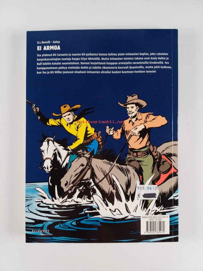 Muu(t) tekijä(t): Jukka Nyman, Ville Mäkelä ym.Sarja: Tex Willer -kirjasto 13Alkuteos: Senza pietaAsiasanat: intiaanit, uudisasukkaat, sarjakuvat, syrjäseudut, seikkailusarjakuvat, takaa-ajo, lännensarjakuvat