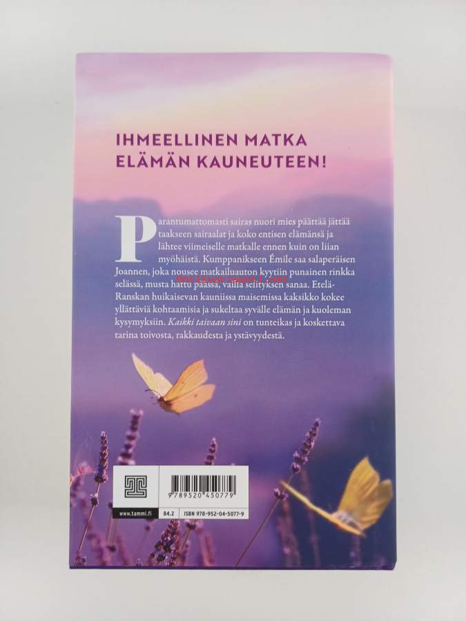 Alkuteos: Tout le bleu du cielAsiasanat: ystävyys, rakkaus, matkat, miehet, Alzheimerin tauti, kohtaaminen, parantumattomasti sairaat, matkakumppanit, nojatuolimatkalle