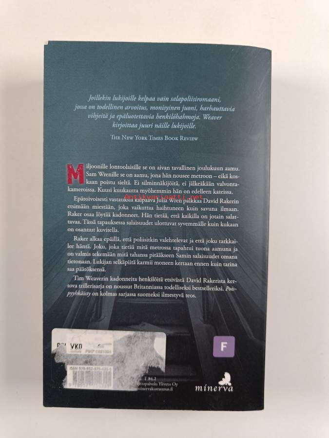 Sarja: David Raker, Minerva CrimeAlkuteos: VanishedAsiasanat: Lontoo, metro, aviomiehet, Iso-Britannia, etsintä, kadonneet, salaisuudet, yksityisetsivät