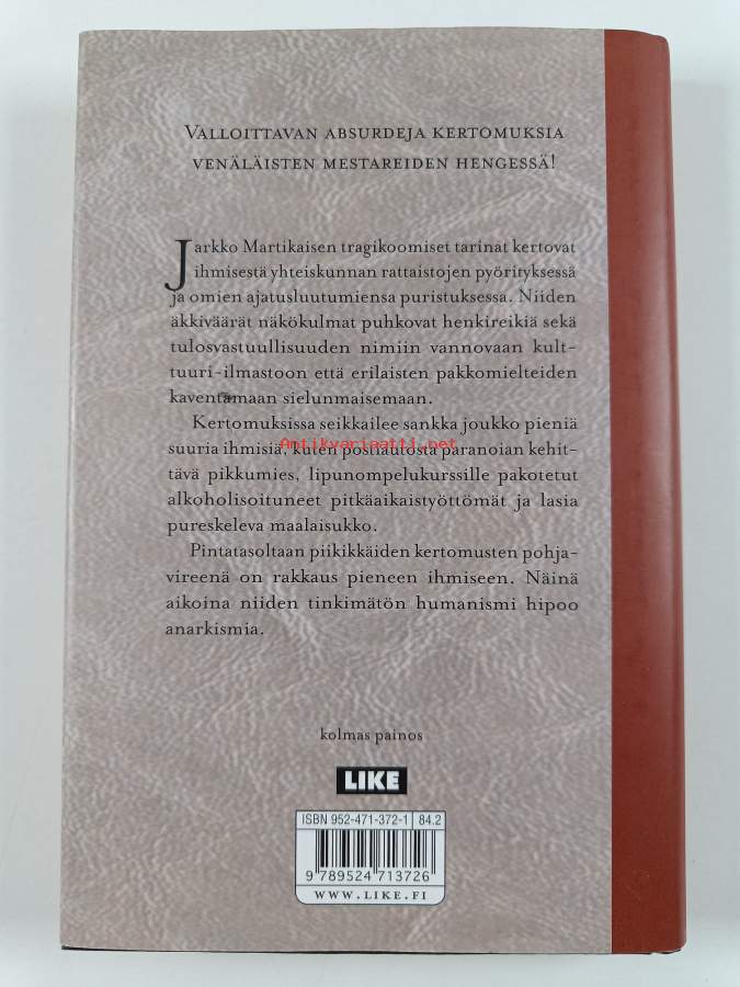 Hyvä. Tarkempi kuntoluokka: K3+ ; Pienoista kulumaa kansissa, pienoista kolhua selkämyksen päissä. Kansipaperin kunto: erinomainen tai virheetön (korkeintaan hyvin pientä käytön jälkeä)
