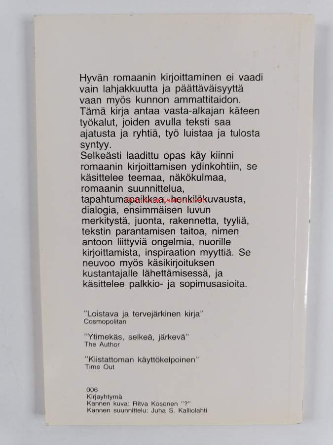 Muu(t) tekijä(t): Liisi (suom.) HuhtalaAlkuteos: The craft of novel-writingAsiasanat: oppaat, kirjoittaminen, kaunokirjallisuus