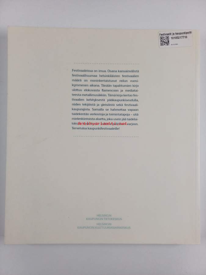 Muu(t) tekijä(t): Satu SilvantoAsiasanat: Helsinki, musiikki, kaupunkikulttuuri, musiikkijuhlat, kaupungit, kulttuuri, juhlat, kaupunkisosiologia, esittävät taiteet, kulttuuritapahtumat, sosiologia, mediakulttuuri, tapahtumat, järjestäminen, festivaalit, yleisö, elokuvafestivaalit, städer, musik, Music, föreställande konst, kulturevenemang, Towns, publik, festivaler, kulttuurijohtaminen, arts management, elämykset, kulttuurin markkinointi, events, experiences, arts marketing, filmfestivaler, urban sociologi, kulttuurituottajat