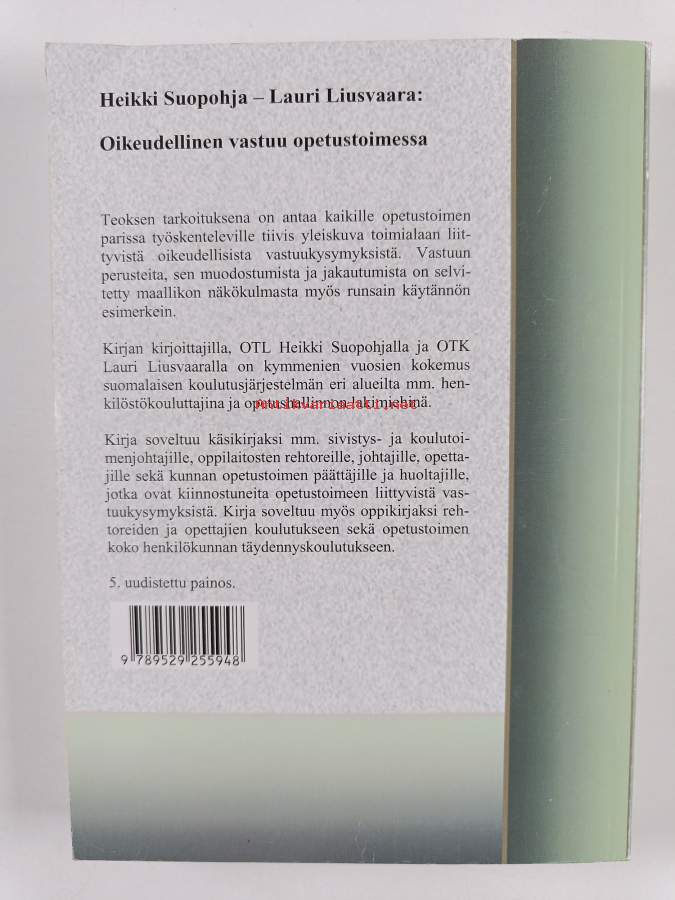 Muu(t) tekijä(t): Lauri LiusvaaraAsiasanat: lainsäädäntö, vastuu, rikokset, koulut, oikeudellinen sääntely, oikeustiede, rikosoikeus, vahingonkorvaus, työtapaturmat, virkarikokset, opetustoimi, opetushenkilöstö, palvelussuhteen ehdot, rikosoikeudellinen vastuu, palvelussuhde
