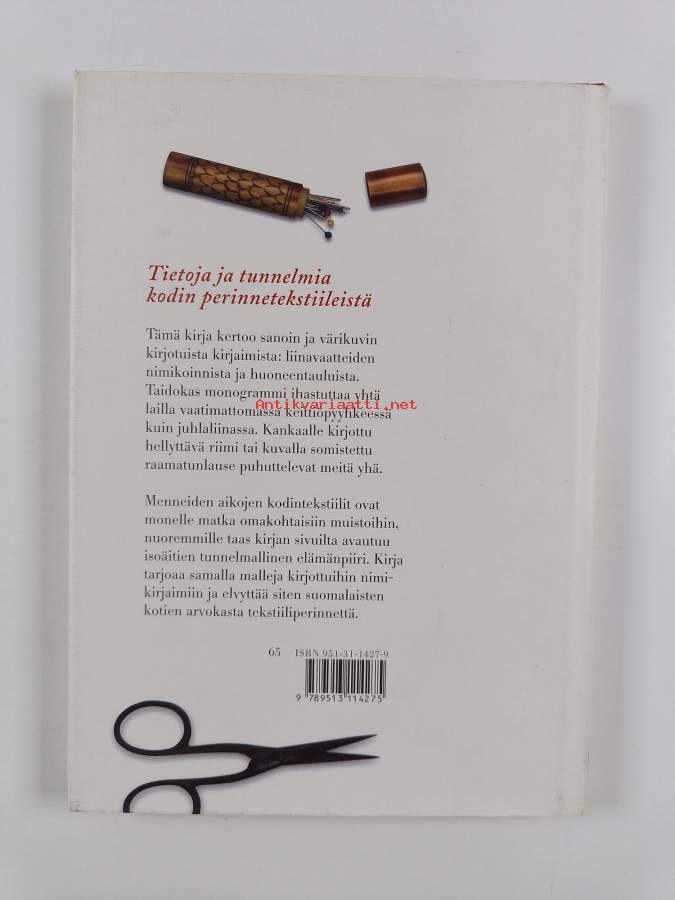 Muu(t) tekijä(t): Juhani SeppovaaraMerkinnät: omistajamerkintä (tarra)Asiasanat: historia, kirjonta, käsityöperinne, kodintekstiilit, nimikointi, liinavaatteet