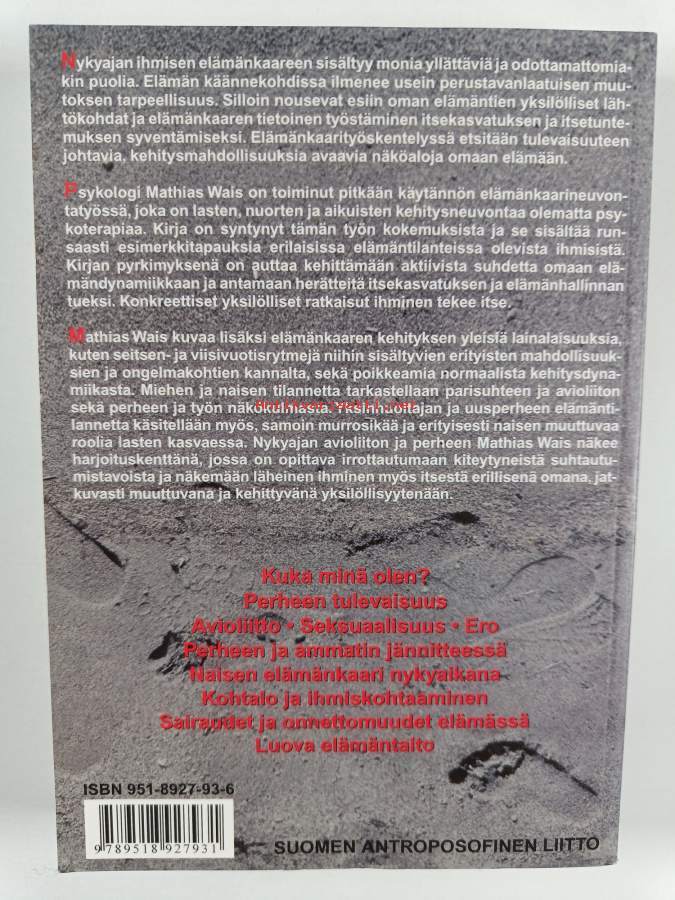 Muu(t) tekijä(t): Eeva Tuomola, Annikki Kiefer ym.Alkuteos: Biographie-ArbeitAsiasanat: naiset, elämäntaito, ihmissuhteet, parisuhde, seksuaalisuus, kriisit, itsekasvatus, avioliitto, elämänhallinta, perheet, henkinen kasvu, aikuisuus, miehet, elämänkaari, minä, aikuiset, karma, antroposofia, yksilöllisyys