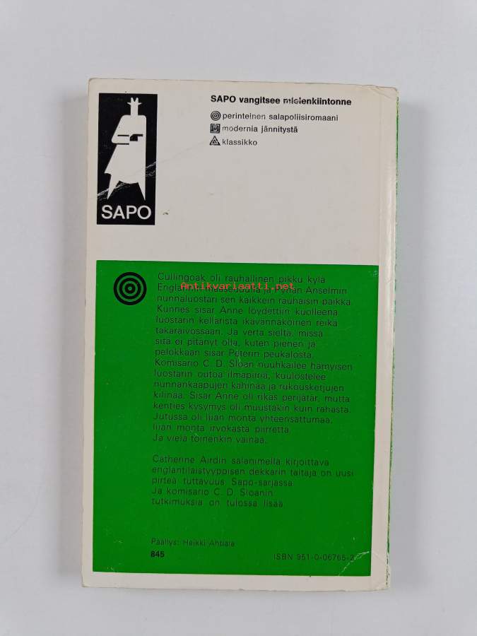 Aird - Vanhurskas vainaa, 1975. SAPO 180. Perinteinen salapoliisiromaani, komisario C.D. Sloan ratkaissee murhamysteerin.