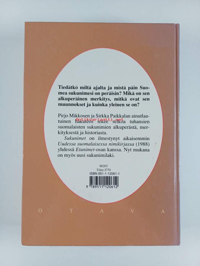 SukunimetKirjaHenkilö Mikkonen, Pirjo, ; Henkilö Paikkala, Sirkka, kirjoittaja, Otava 1992