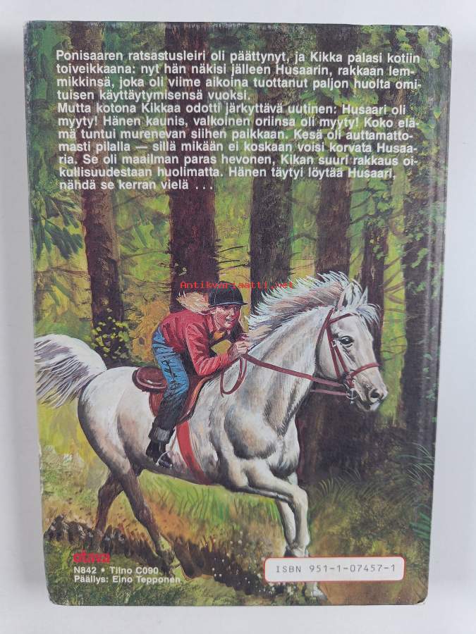 Hyvä. Tarkempi kuntoluokka: K3+ ; Hieman kulumaa kansissa, pienoista kolhua reunoilla ja kulmissa, edessä vanha hintalappu