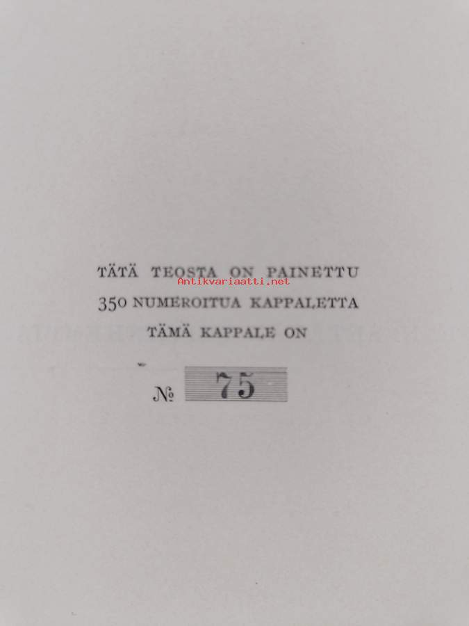 Hyvä. Tarkempi kuntoluokka: K3+ ; Hieman kulumaa. numeroitu (75/350)