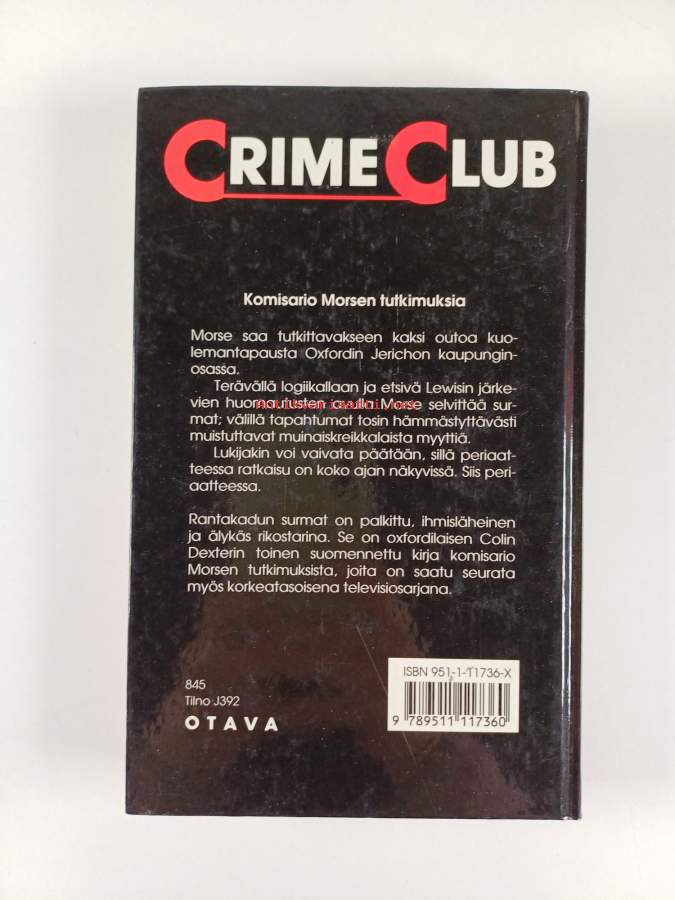 Colin Dexter / Rantakadun surmat. TV-stä tuttu komisario Morse miettii ja tekee tutkimuksia.