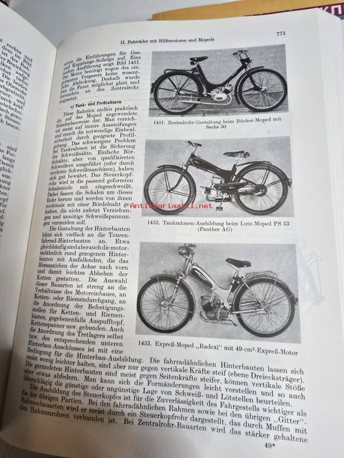 Kirja uusintapainos vuodelta 1955. Käsittelee moottoripyörät, moottoriskootterit ja mopot sekä niiden huolto. Koko 25 x 19 cm