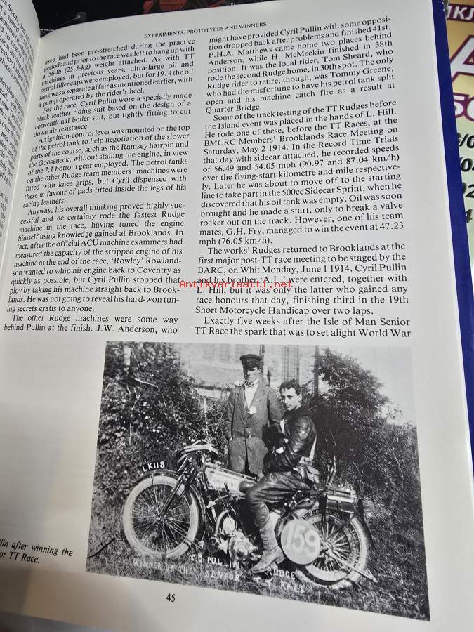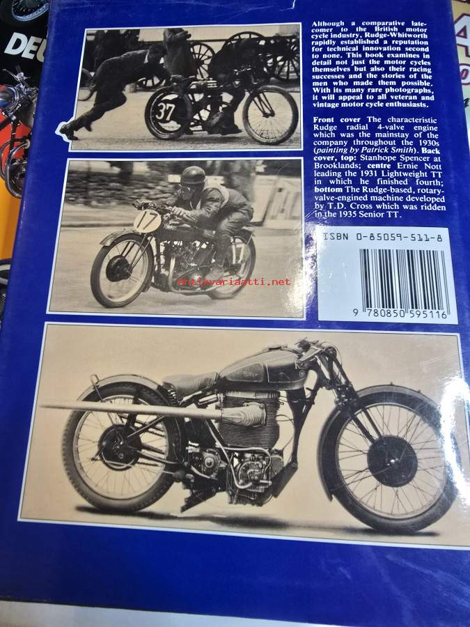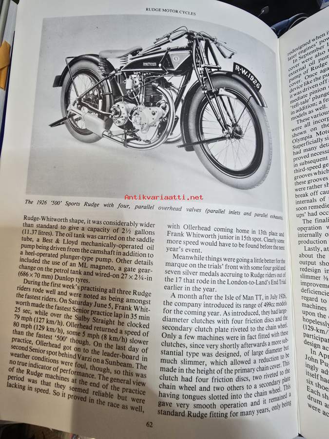 Kirja kertoo Rudge moottoripyörien historian.. Kirjoittanut Peter Hartley.