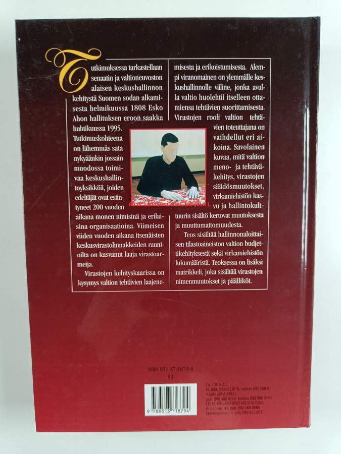 Keskusvirastolinnakkeista virastoarmeijaksi : senaatin ja valtioneuvoston alainen keskushallinto Suomessa 1809-1995 (signeerattu, tekijän omiste)