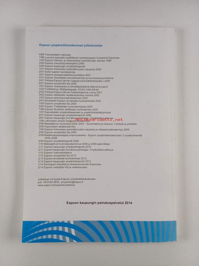 Muu(t) tekijä(t): Katri AnnalaSarja: Espoon ympäristölautakunnan julkaisusarja 3/2014Asiasanat: historia, luonnonsuojelu, perhoset, putkilokasvit, maankäyttö, perinnebiotooppi, luontotyypit, naturskydd, markanvändning, vårdbiotop, kärlväxter, fjärilar, naturtyper