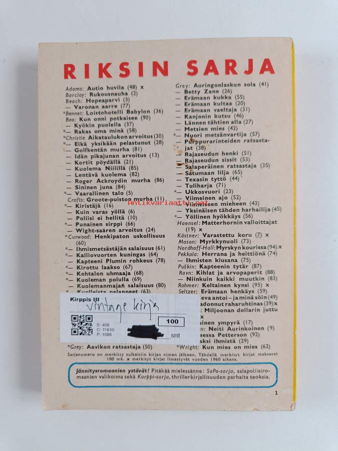 Muu(t) tekijä(t): Werner AnttilaSarja: Riksin sarja 94Alkuteos: Hurricane