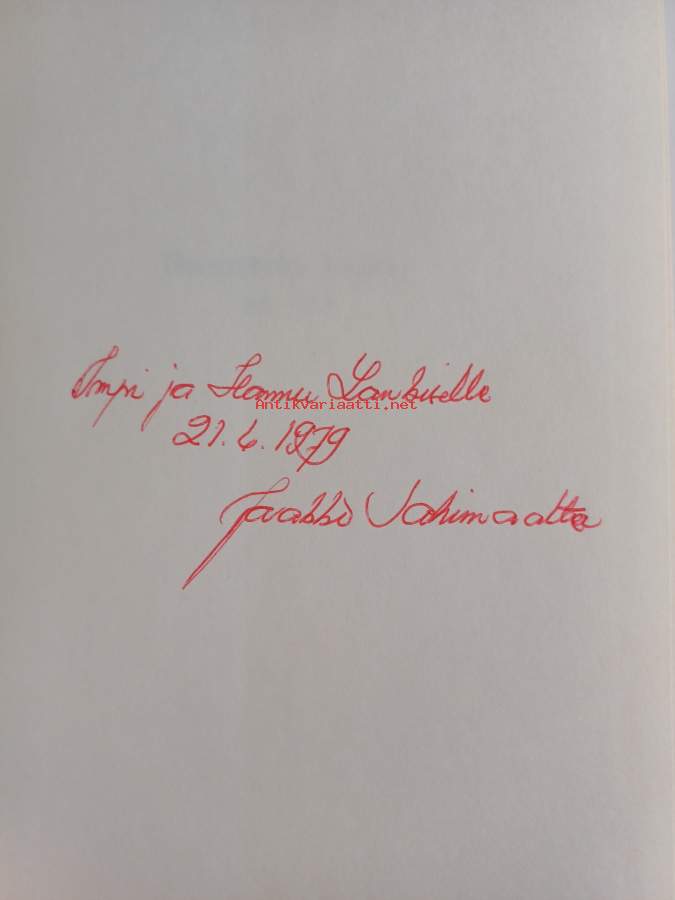 Hyvä. Tarkempi kuntoluokka: K3+ ; Hieman kulumaa kansissa, pienoista kolhua selkämyksen päissä. Kansipaperin kunto: joitain repeämiä/kulumaa