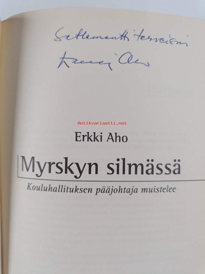 Myrskyn silmässä : kouluhallituksen pääjohtaja muistelee (signeerattu, tekijän omiste)