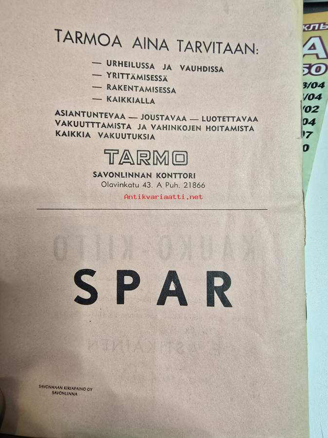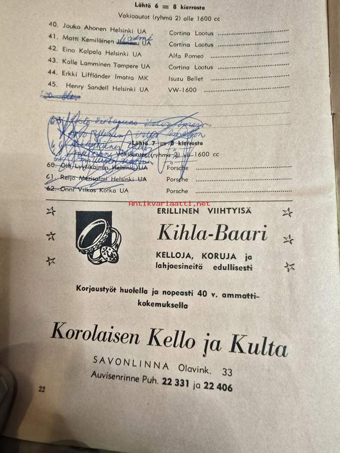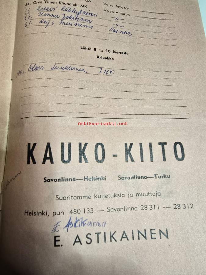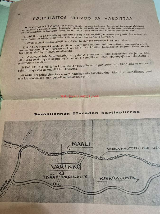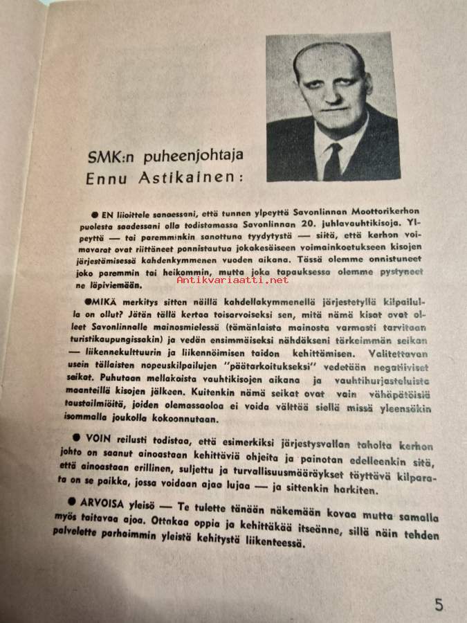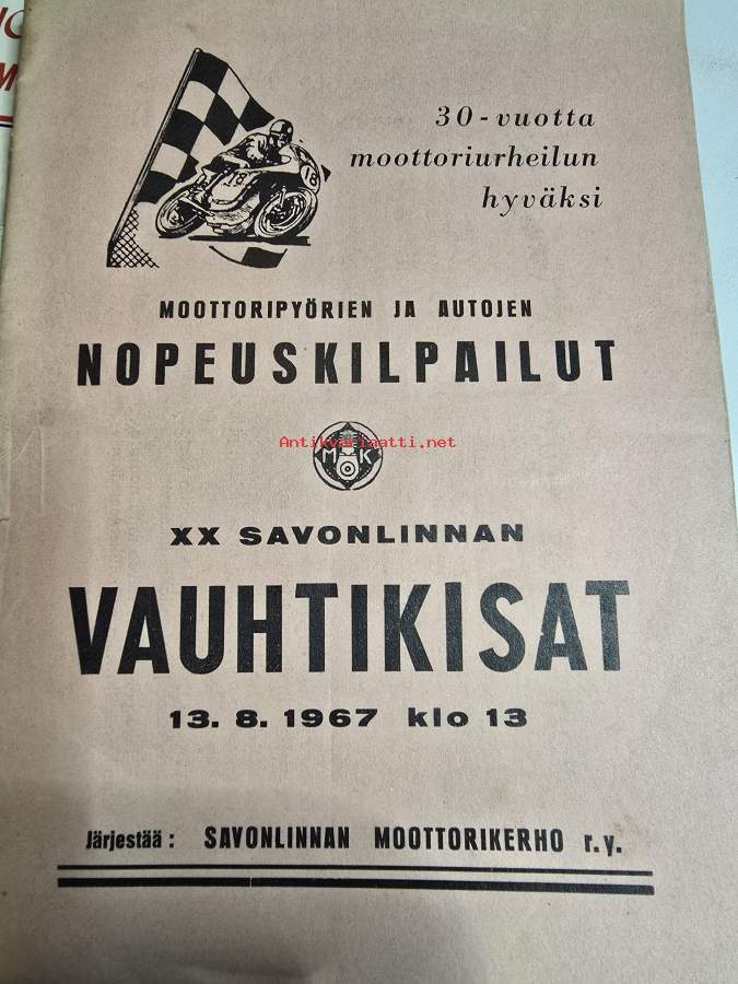 XX Savonlinnan vauhtikisat 13, 8, 1967 käsiohjelma