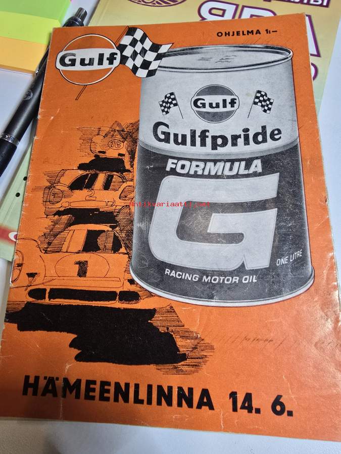 . Koko 21 x 15 cm. Kannessa hieno gulf mainos.