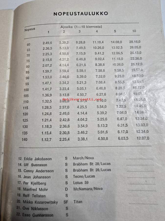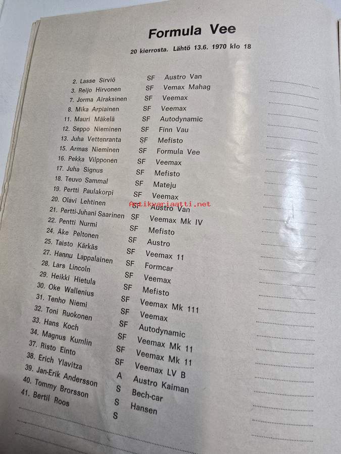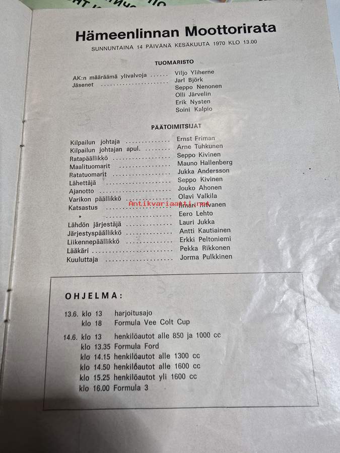Hämeenlinnan autokilpailun käsiohjelma 14, 6, 1970