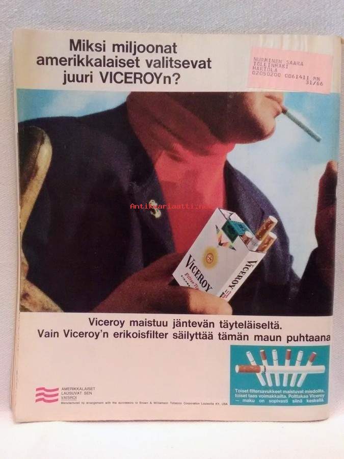 Ilmestynyt 18.5.1966, 120s., selän ylä- ja alareunassa pientä rispaumaa, sisällys mm. Ingrid Bergman : En kadu mitään, Timo Mäkinen : Peruutus painajaisena, Prima ballerina Dame Margot Fontey, Udo Jürgens : Se kauhea jannu, Näyttely Lasinpuhallusta Iittalassa Iittala vuodesta 1881 (8s.), Virkkaus- ja neulemalleja koko perheelle (12s.)