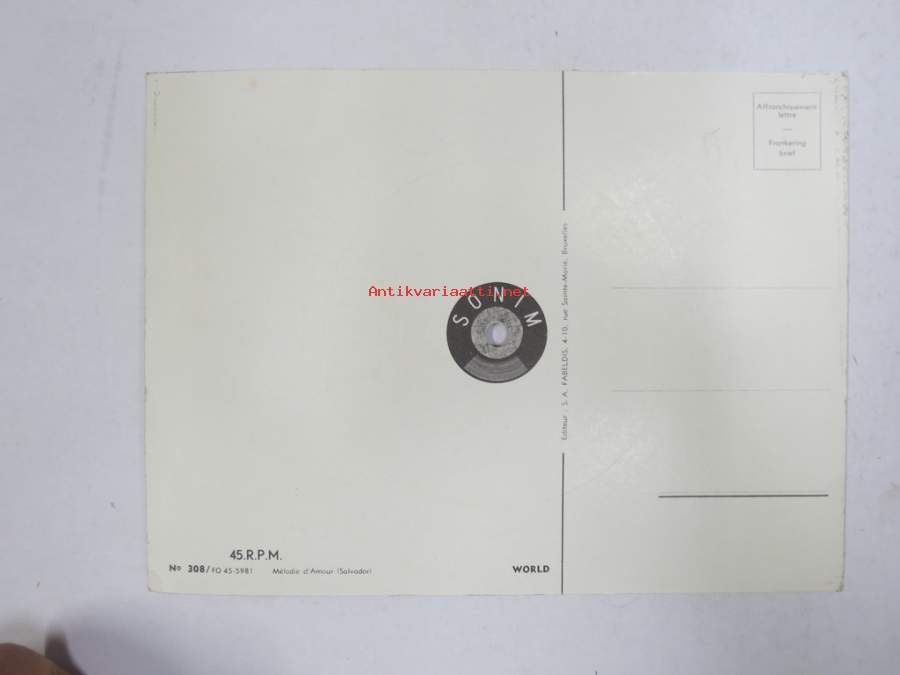 Sonim "Histoire d´un Amour" -äänilevypostikortti 45 rpm postcard record