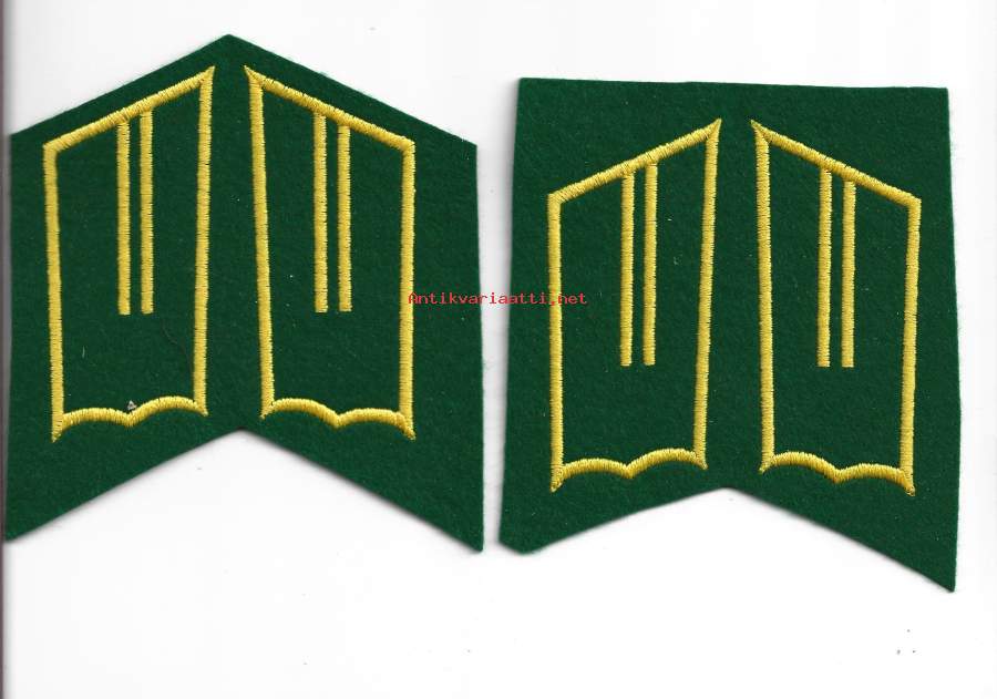 SA-kauluslaatat, pari - Jääkäri värvätty (vihr-kelt) "vaaleaharso" tukikangas n. 8cm