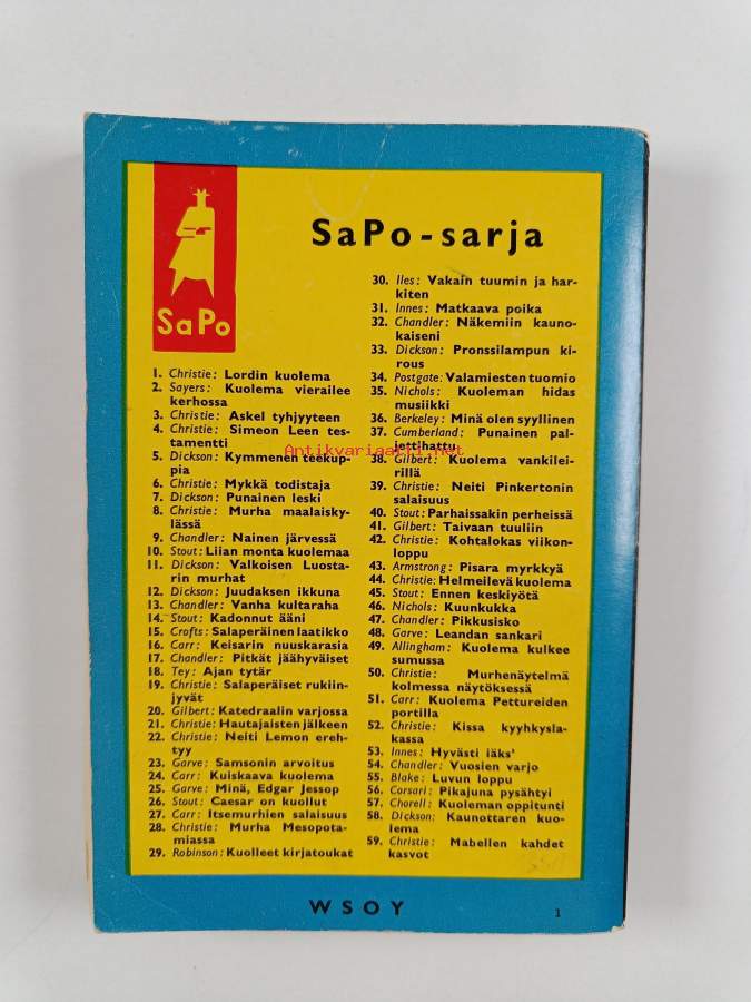 Muu(t) tekijä(t): Eero AhmavaaraSarja: Sapo 59Alkuteos: One, two, buckle my shoe