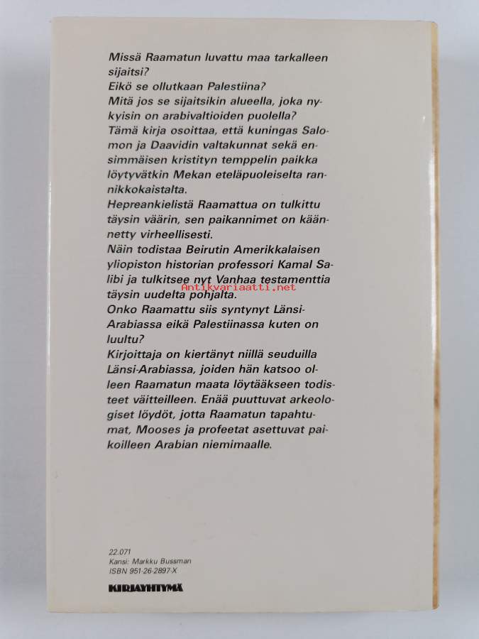 Muu(t) tekijä(t): Marja KyröAlkuteos: The Bible came from ArabiaAsiasanat: esihistoria, juutalaiset, raamatuntulkinta, raamatunhistoria