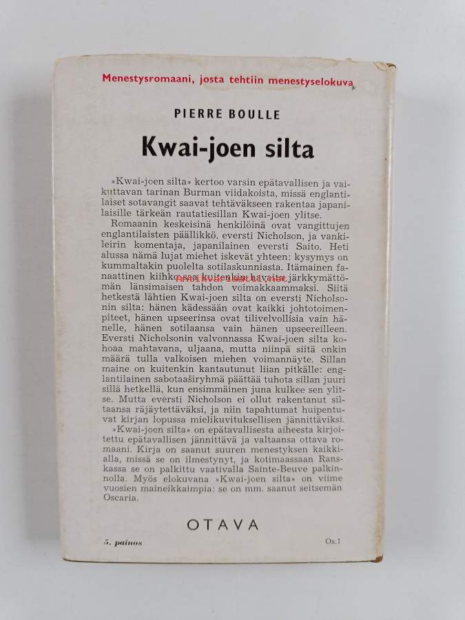 Kwai joen silta / Pierre Boulle. Kova kantinen, ilman kansipaperia Suomalainen kirjakauppa P.1969