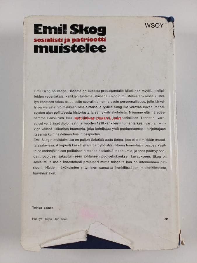 Hyvä. Hieman nuhruisuutta kansissa, hieman kolhua reunoilla ja kulmissa, selkämyksessä vinoutta. Kansipaperin kunto: repeämiä/kulumaa