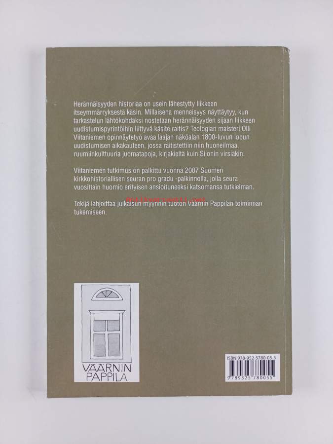 Sarja: Väärnin pappilan julkaisuja 5Asiasanat: historia, mentaliteettihistoria, raittius, virret, virsikirjat, herännäisyys, raittiustyö, herätysliikkeet