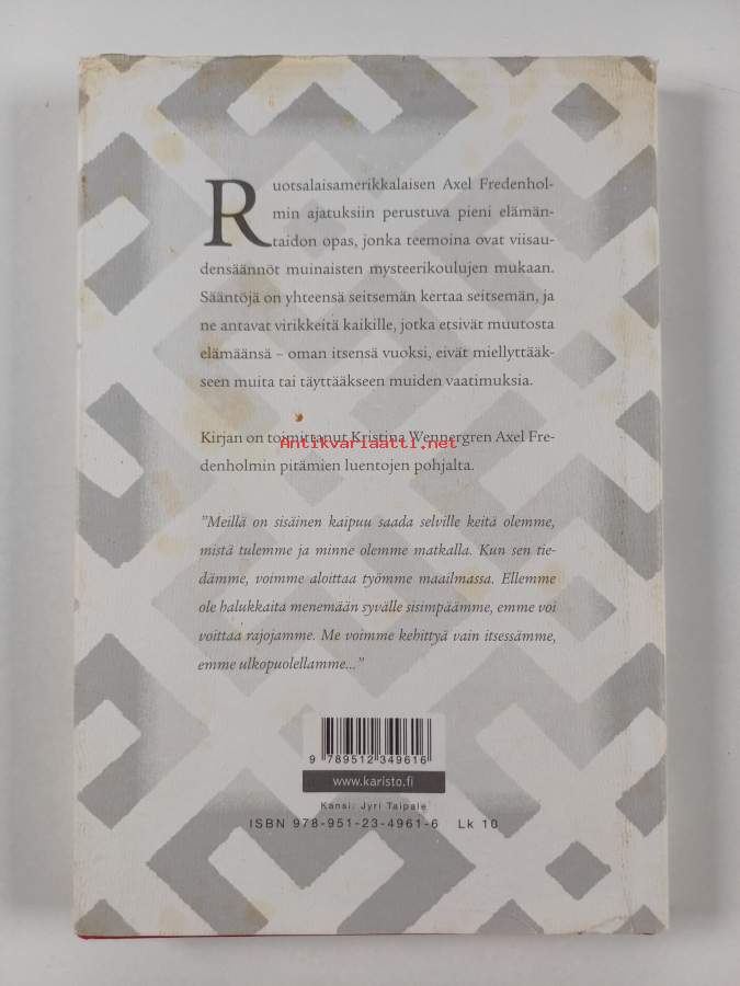Axel Fredenholmin viisaudensäännöt. (Psykologia, elämäntaito)