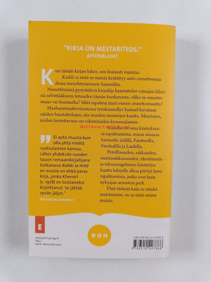 Muu(t) tekijä(t): Tarja LipponenSarja: BonAlkuteos: Allt jag inte minns