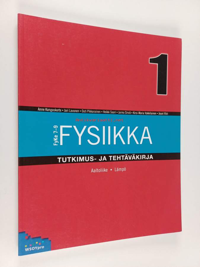 Muu(t) tekijä(t): Heikki Saari, Jari Lavonen ym.Sarja: Fysiikka : 1; tutkimus- ja tehtäväkirja; Fyke 7-9Asiasanat: fysiikka, peruskoulun yläaste, oppikirjat, läroböcker, grundskolans högstadium, fysik