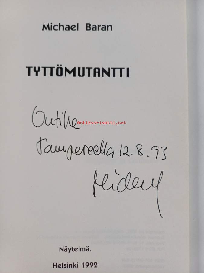 Hyvä. Tarkempi kuntoluokka: K3+ ; Hieman kulumaa. tekijän signeeraama omiste