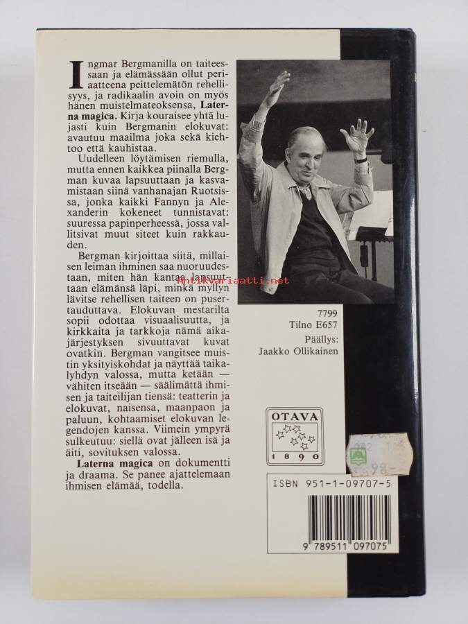 Laterna Magica - muistelmat, 1988. Muistelmakirja kouraisee yhtä lujasti kuin Bergmanin elokuvat: avautuu maailma, joka sekä kiehtoo, että kauhistaa.
