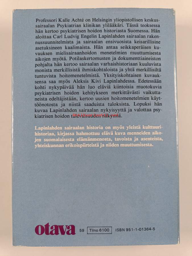 Satakolmekymmentä vuotta psykiatriaa : Lapinlahden sairaala 1841-1971 (signeerattu, tekijän omiste)