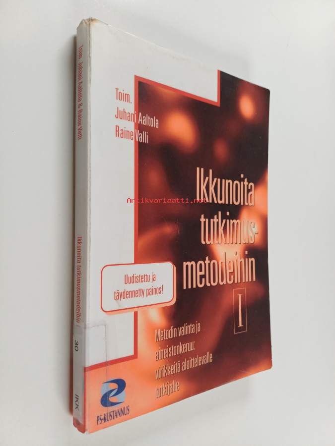 Muu(t) tekijä(t): Juhani Aaltola, Juha T. Hakala ym.Sarja: Ikkunoita tutkimusmetodeihin 1; virikkeitä aloittelevalle tutkijalleAsiasanat: ongelmanratkaisu, havainnointi, elämäkertatutkimus, kasvatustiede, tutkimusmenetelmät, tutkimustyö, yhteiskuntatieteet, tutkimusaineisto, toimintatutkimus, metodologia, haastattelututkimus, miellekartat, menetelmät, tapaustutkimus, valinta, tutkielmat, teemahaastattelut, sosiometria, kyselytutkimus, eläytymismenetelmä, survey-tutkimus