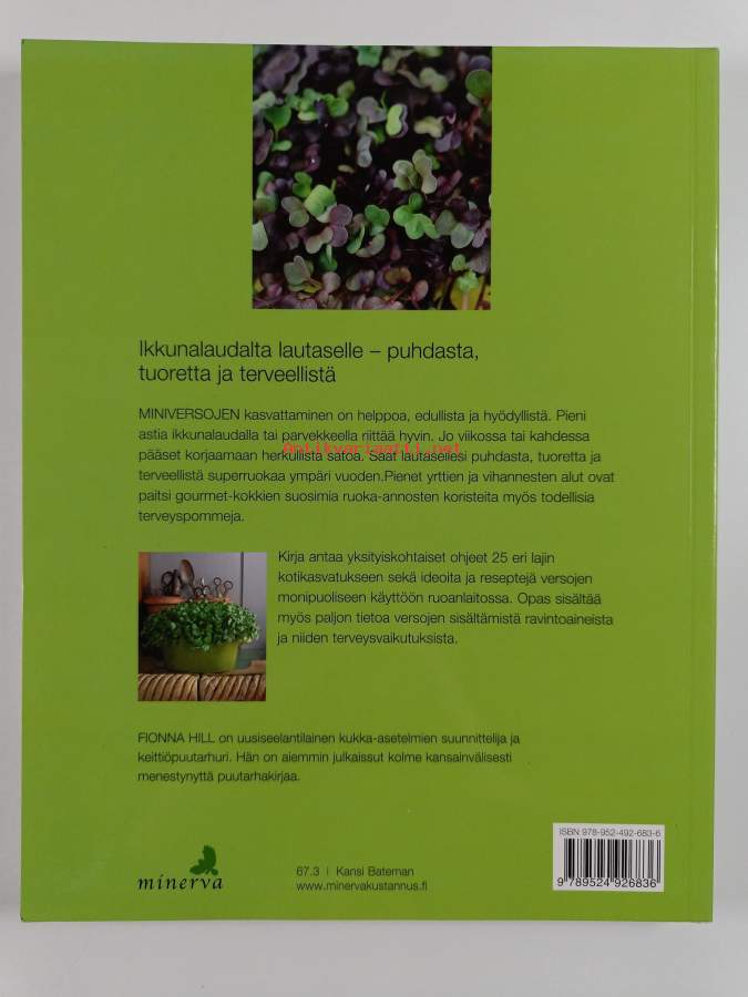 Muu(t) tekijä(t): Helena VeijalainenAlkuteos: How to grow microgreensAsiasanat: ruokaohjeet, ruoanvalmistus, viljely, versot
