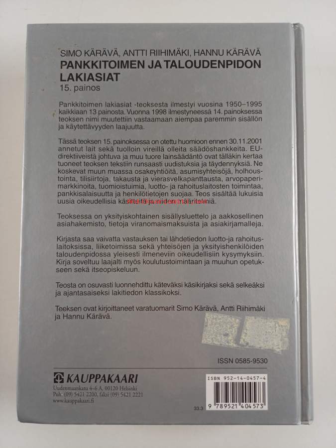 Muu(t) tekijä(t): Antti Riihimäki, Hannu KäräväSarja: Suomen lakimiesliiton kirjasarja n:o 117Asiasanat: pankit, lakiasiain käsikirja