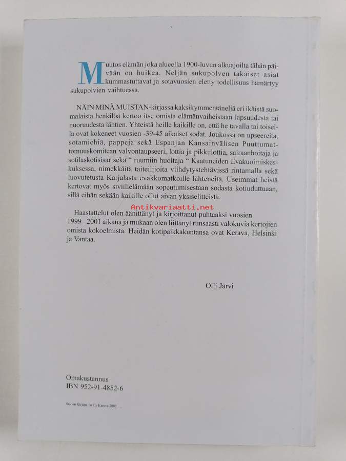 Näin minä muistan : sotavuosien 1939-45 nuori ikäpolvi kertoo elämänvaiheistaan (signeerattu, tekijän omiste)