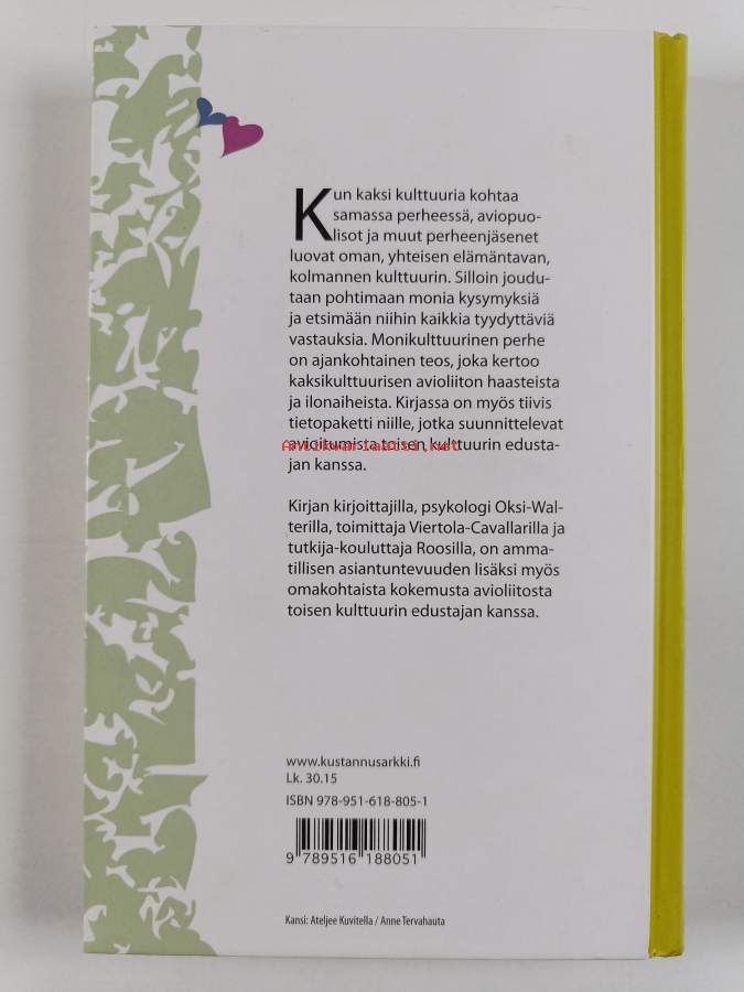 Muu(t) tekijä(t): Ritva Viertola-Cavallari, Jonna RoosAsiasanat: parisuhde, kokemukset, kulttuuri, avioliitto, perheet, identiteetti, vuorovaikutus, monikulttuurisuus, perhe-elämä, kulttuurierot, sopeutuminen, perhesosiologia, monikulttuurinen avioliitto, lapset (ikäryhmät), seka-avioliitto, uskonto (uskominen)