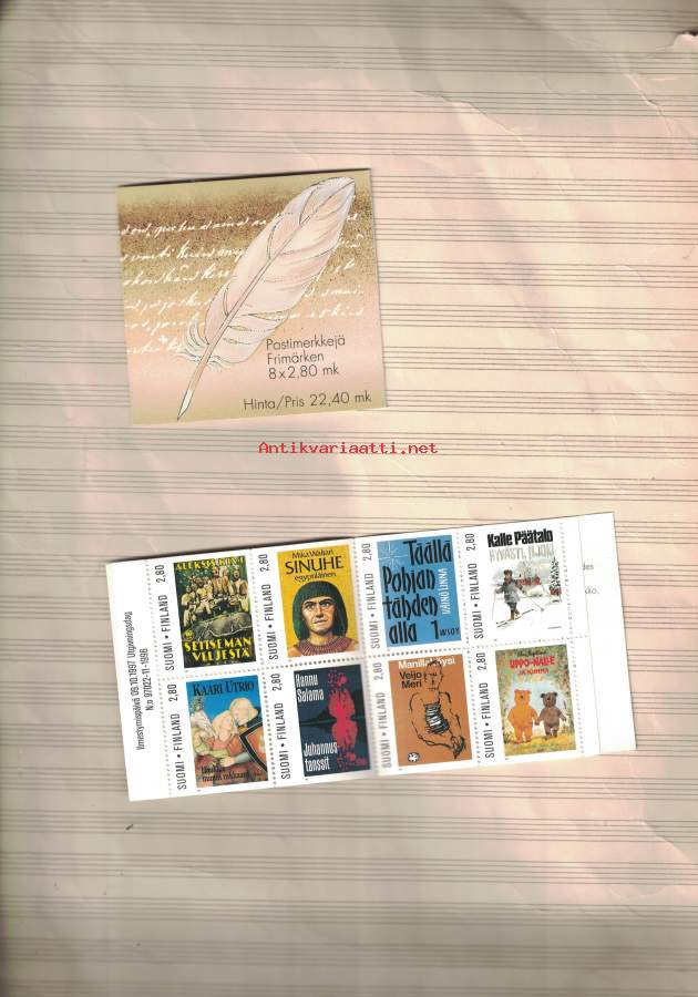 Suomen Kirjailijaliitto 100 vuotta postimerkkivihko ++ 1996