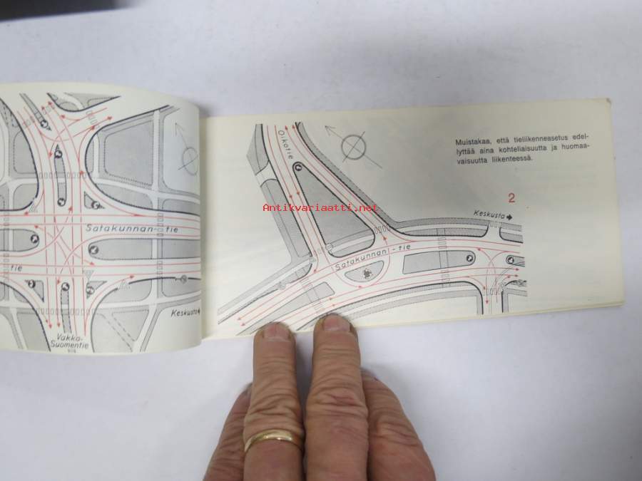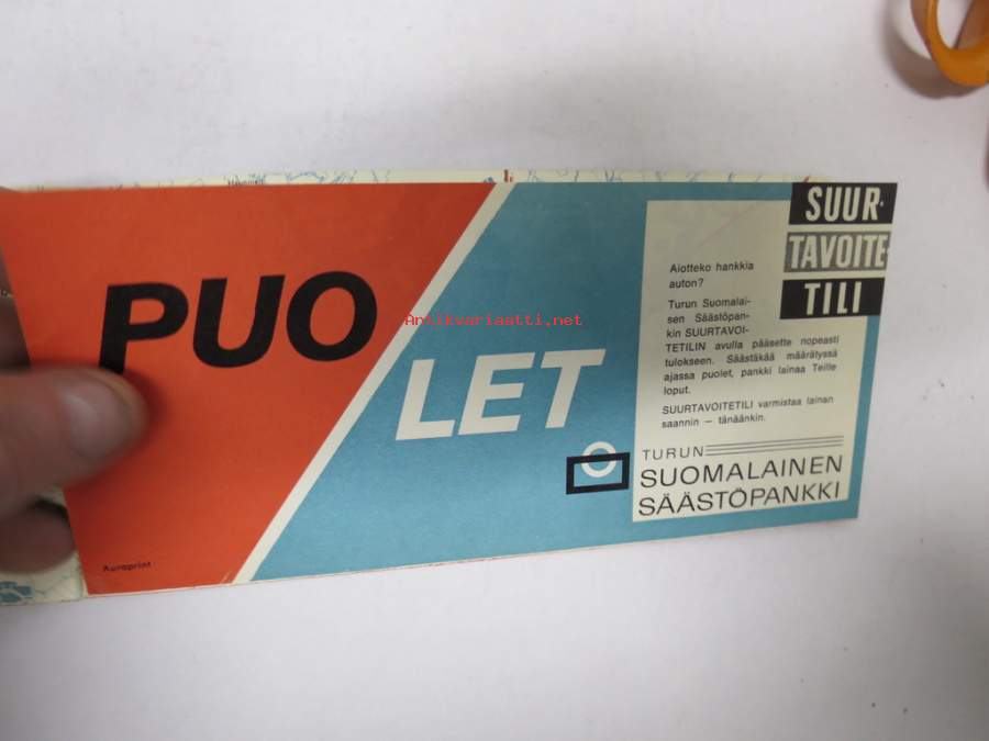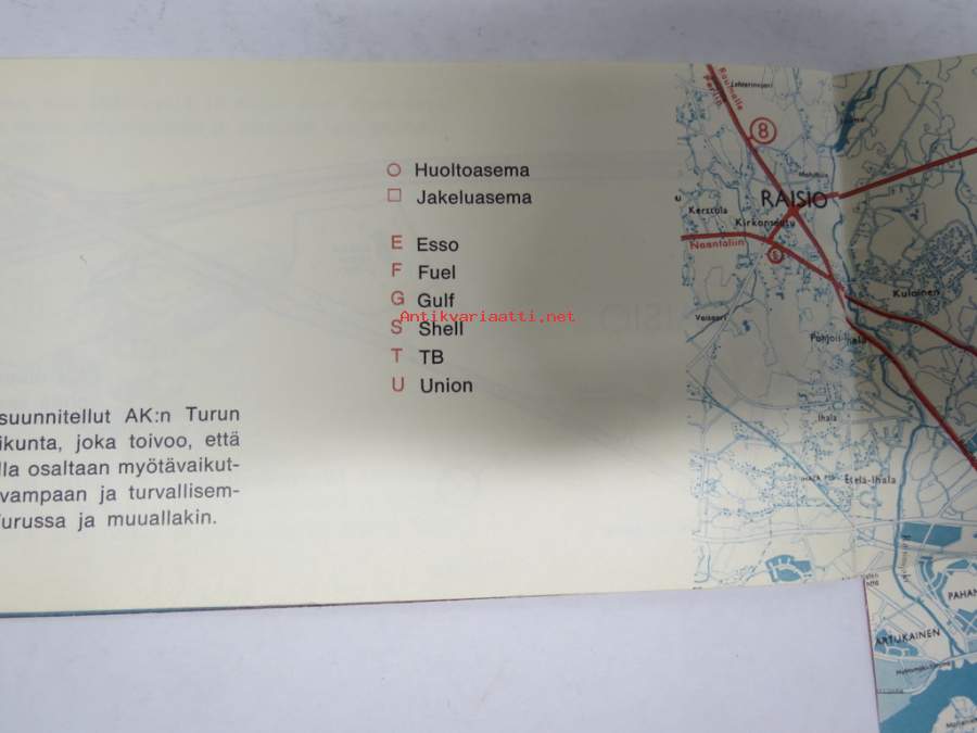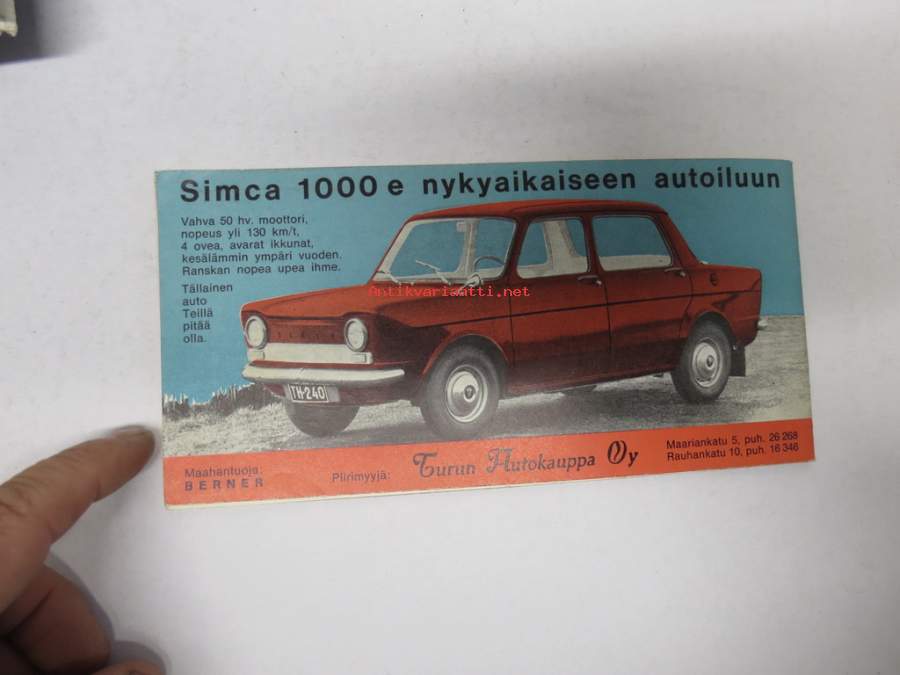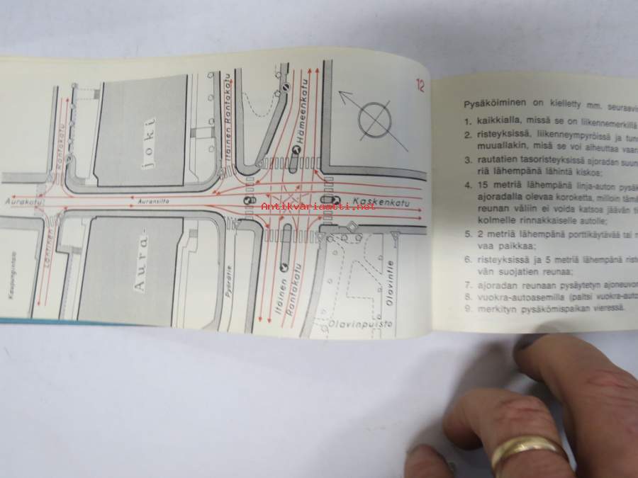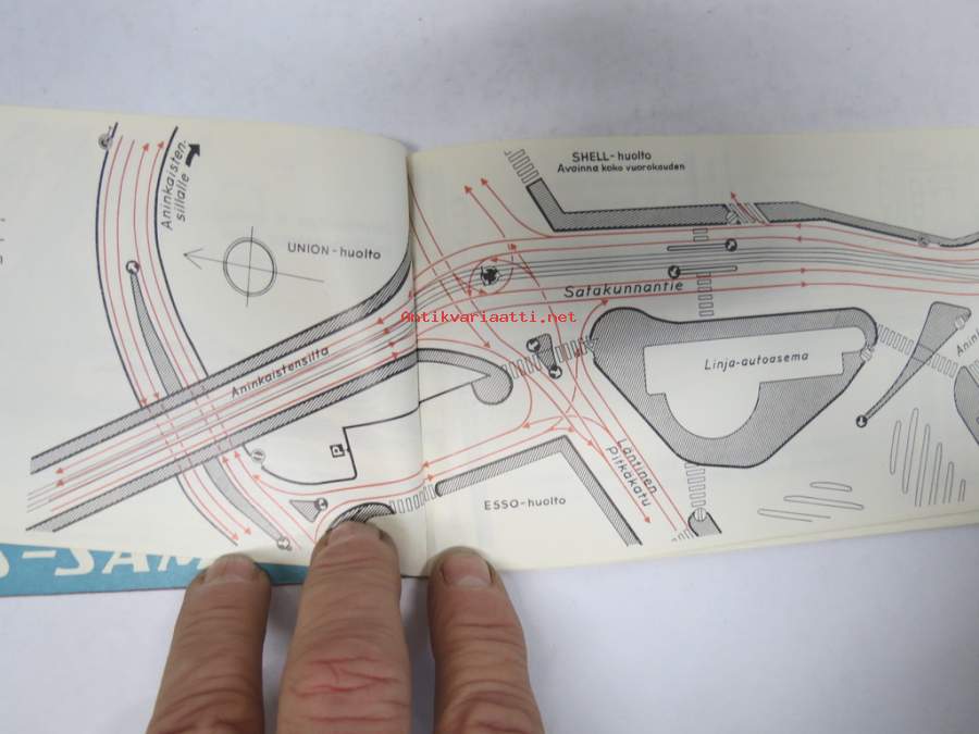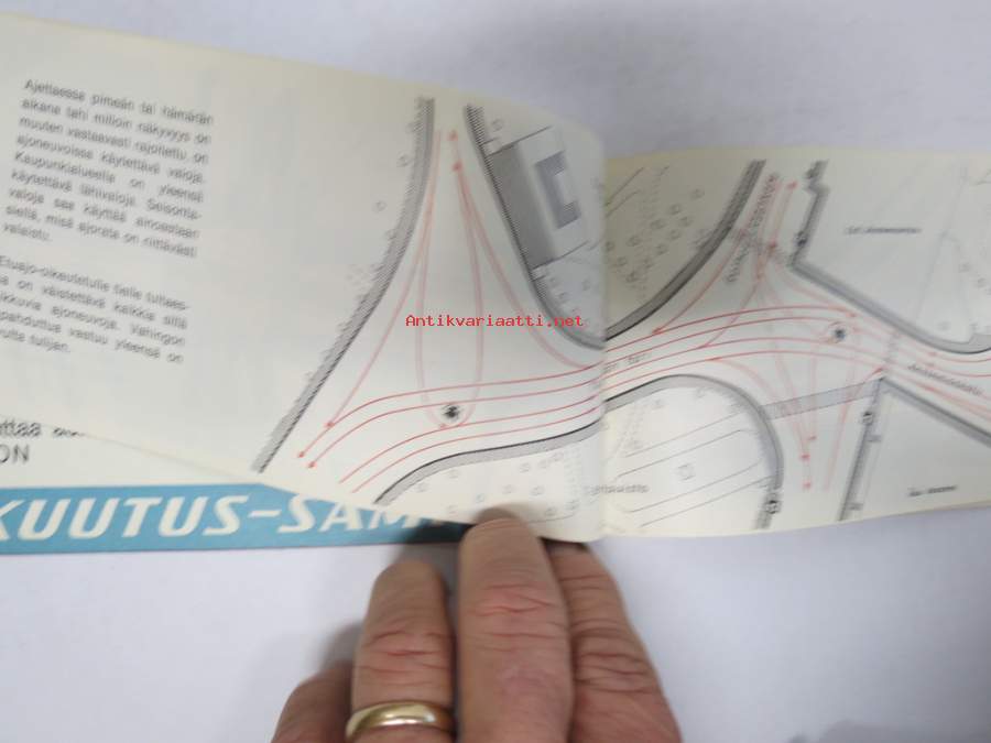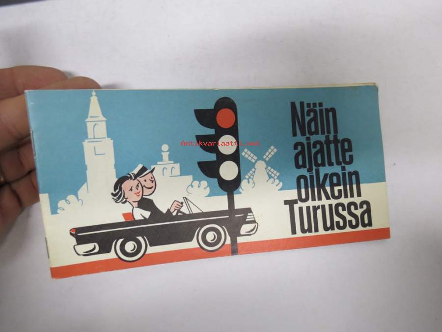 Näin ajatte oikein Turussa - Liikenneopas -Turun kaupunkiliikenteen ajo-ohjeita ja pulmatilanteiden ohjeita, karttoja (huoltoaemat merkitty) takakansi Simca 1000 e