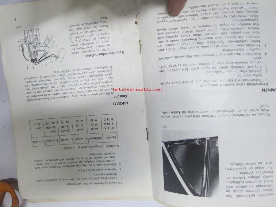 Volvo Amazon 2- ja 4-ovinen henkilöauto (121/122 S F ja L) rakenne, käyttö, huolto -käyttöohjekirja, painettu 12.65 eli alkaen vuosimallista 1966