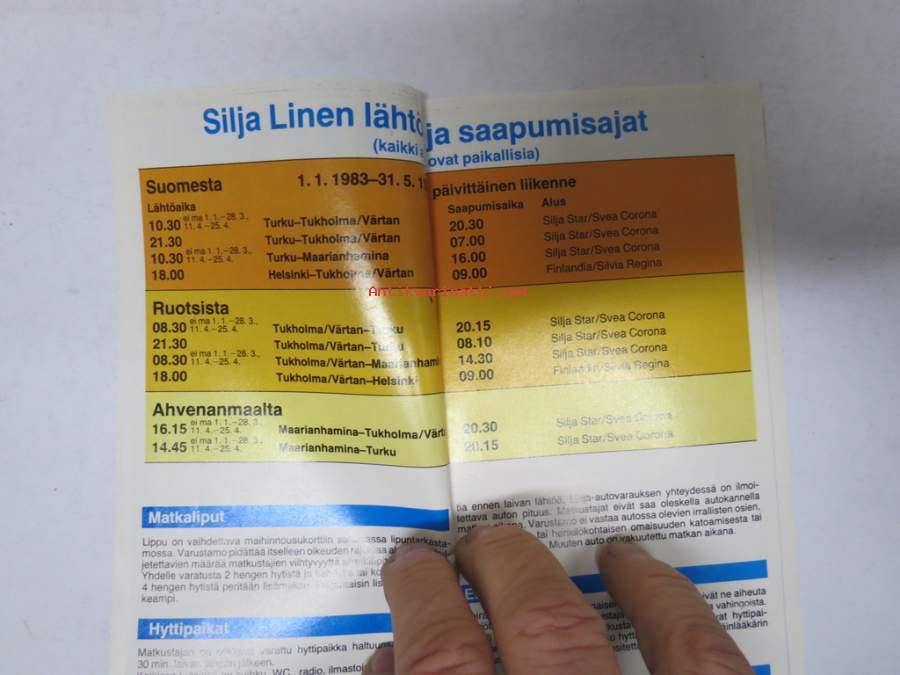 Silja-Line Suomi-Ruotsi 1.1.1983-31.5.1983 aikataulut
