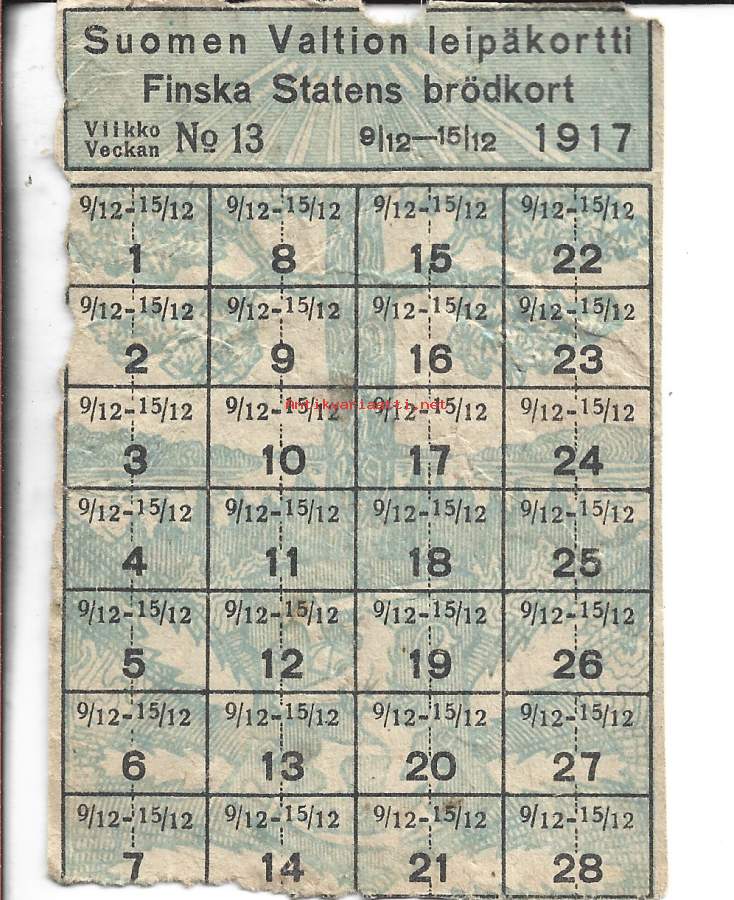Suomen valtion leipäkortti 1917 viikko nr 13