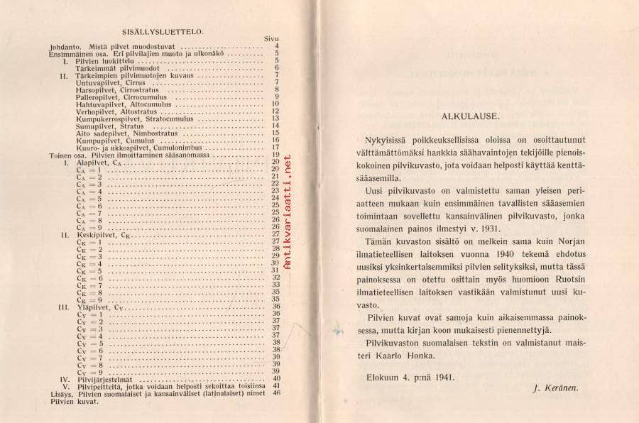 Kansainvälinen pilvikuvasto - Ilmatieteellinen Keskuslaitos. (Meteorologia, säätiede, ilmasto)